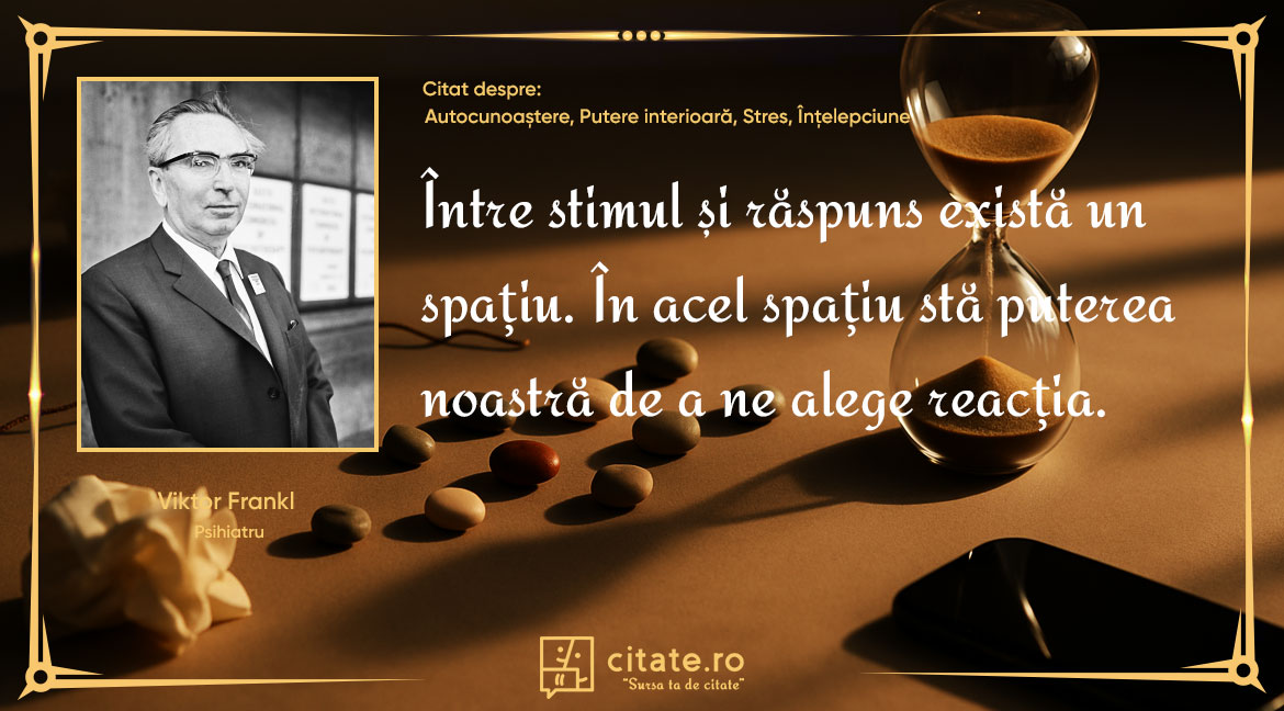 “Între stimul și răspuns există un spațiu. În acel spațiu stă puterea noastră de a ne alege reacția.” – Viktor Frankl